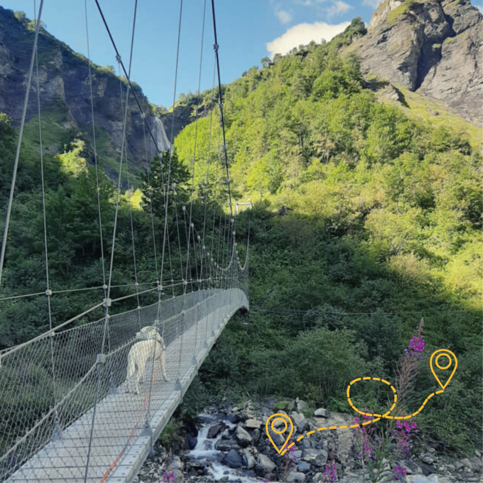 Raggiungete il luogo di potere Batöni con le sue cascate mozzafiato e vivete una piccola avventura lungo il percorso. Il ponte sospeso vi invita a farlo! Alla fine di Weisstannen, seguite il torrente Gufelbach a sinistra fino all'ultimo parcheggio sulla strada asfaltata. Su splendidi sentieri escursionistici tra imponenti pendii montuosi di ardesia, dirigetevi verso le cascate di Batöni. È difficile sbagliare sentiero.